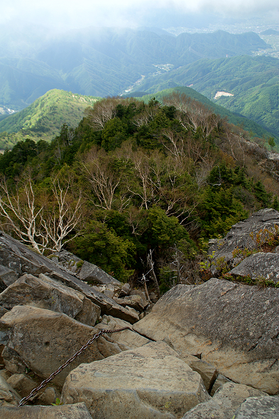 下山は登ってきたルートを引き返すので鎖場の連続です。 鳳岩は迂回ルートを使って降ります。登ってくる人がいる為順番待ちするのが嫌なので。