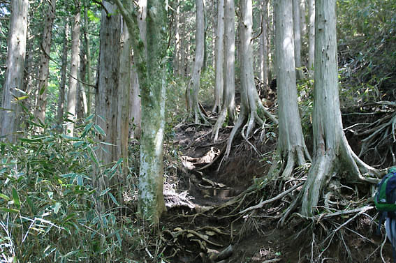 木の根が剥き出しです。