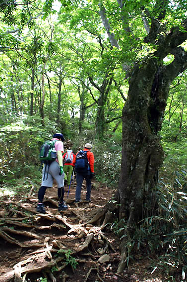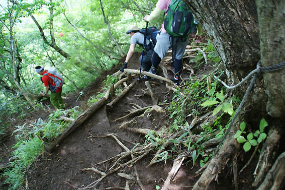 下山は結構急な降り多いです。木の根もあるので危ないです。