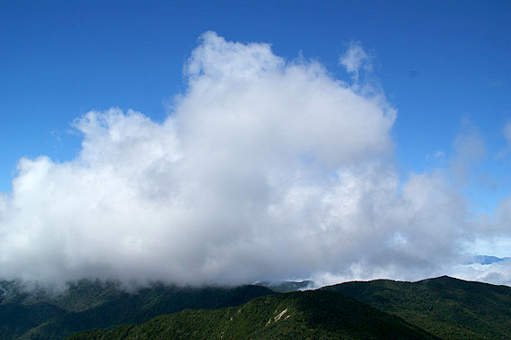あっという間に山頂が雲の中に覆われたみたいです。真っ白。