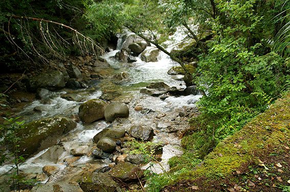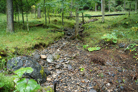 <そして、沢が見えてきました。源流まで沢沿いを歩きますよ。/p>