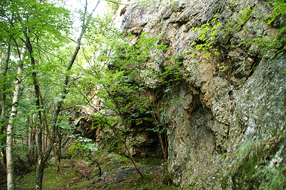 途中岩の壁に到着。