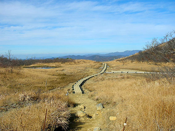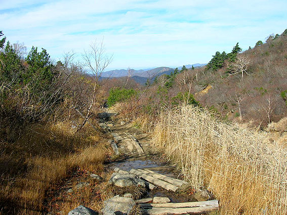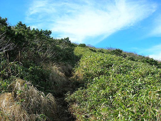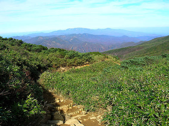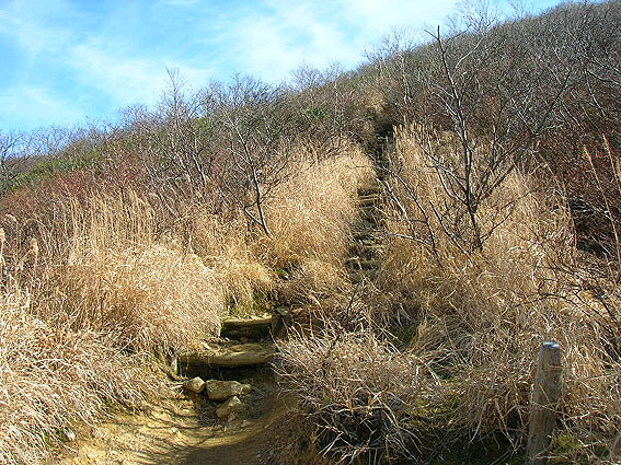 下山中、振り返ると山頂に進む一本の道が・・・あ~この光景ですよ~観光雑誌で見た写真。