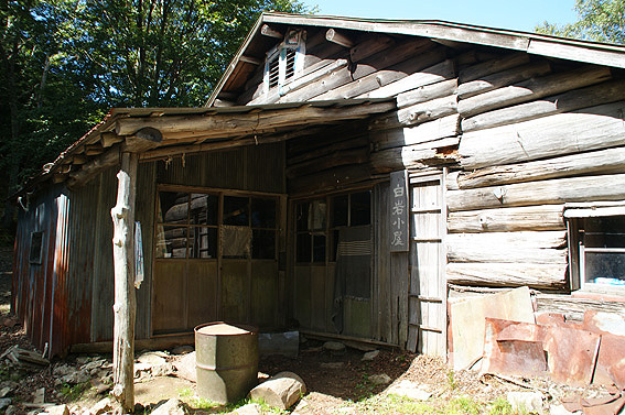 ボロボロの山小屋です。ガラスも割れ、継ぎはぎだらけの山小屋・・・ここで寝泊りは厳しい。