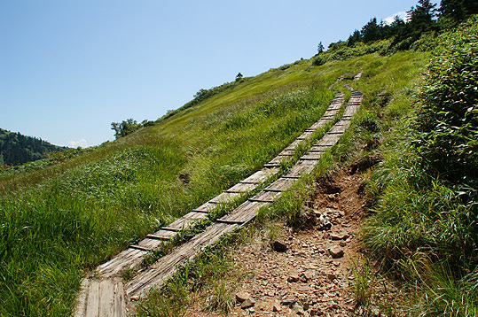 巻機山頂まで戻り一旦休んで、AM10時20分下山開始しました。
