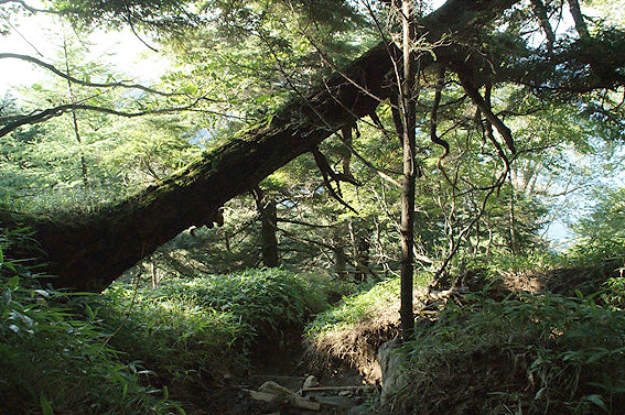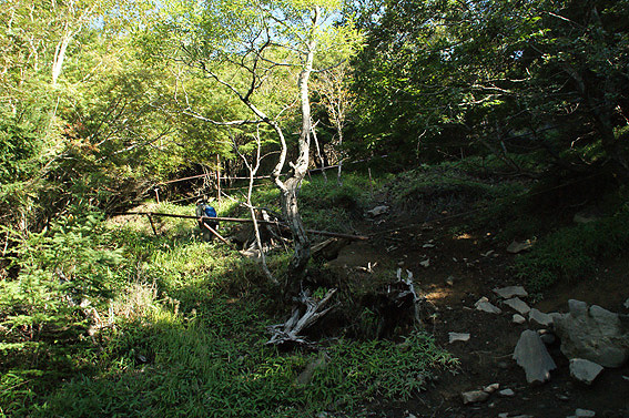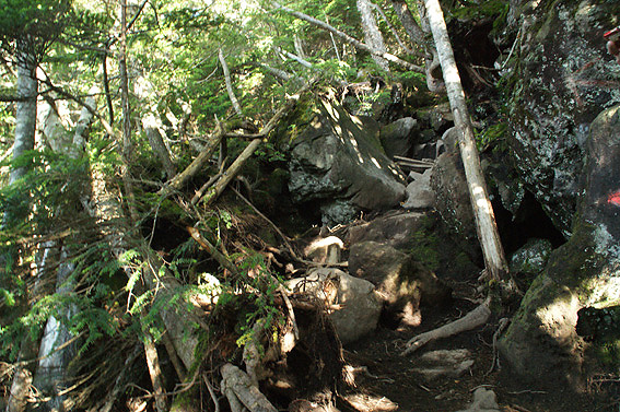 岩と折れた木が散乱して登り辛いです。