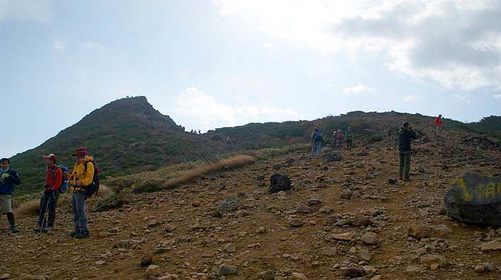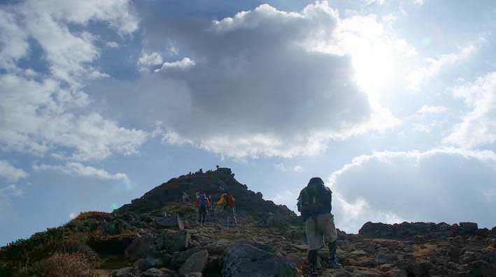 朝日岳山頂目指します。