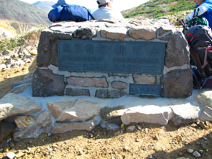 熊見曽根(左側)0.3km 朝日岳(右側)0.2km 朝日岳へ向かいますよ。