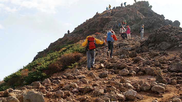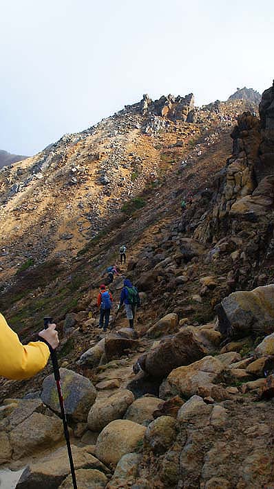 朝日岳山頂目指します。