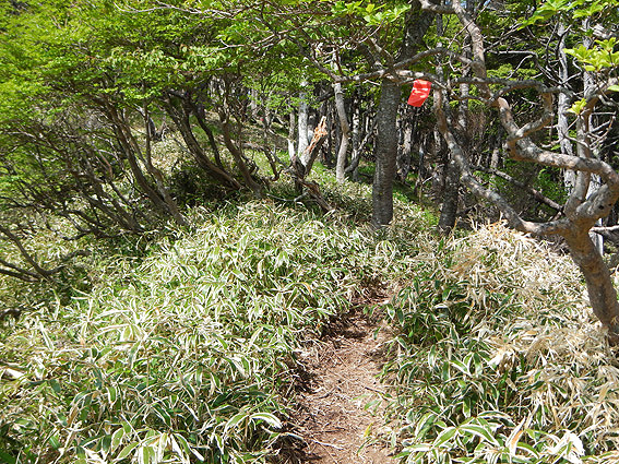 赤いリボンを目印に先へ進みます。