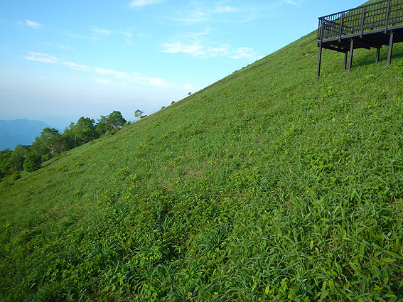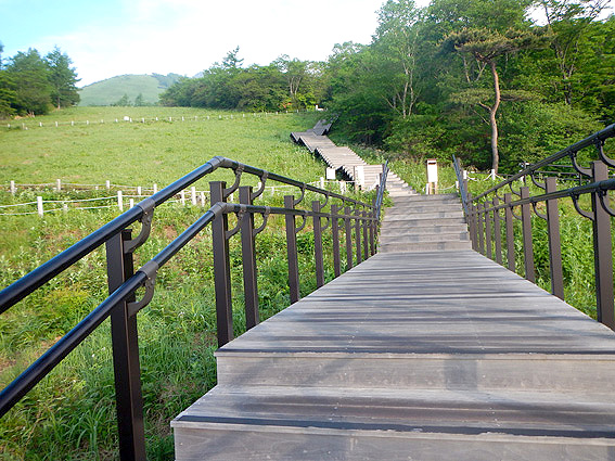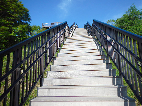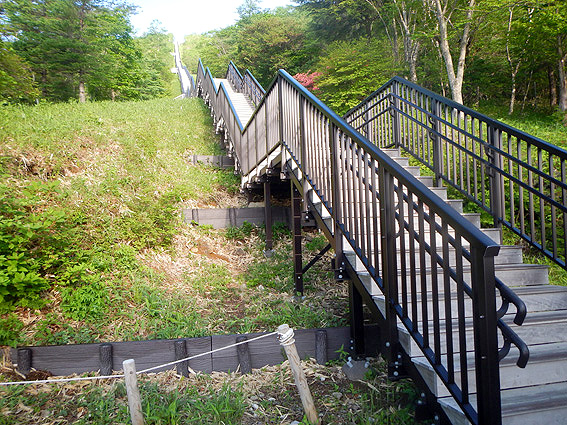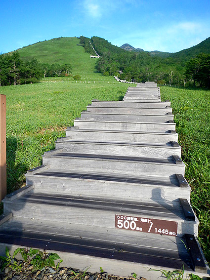 まずは1445段の階段を登ります。以前はリフトがあったみたいですが、撤去されこの階段が造られたそうです。 リフトがあれば楽に登山口まで行けたのに・・・やれやれ。