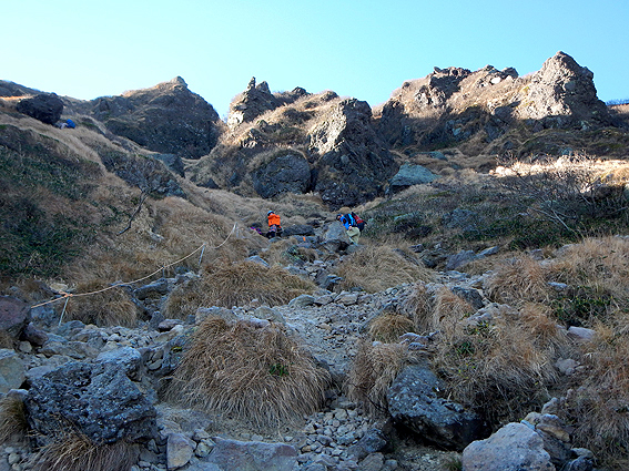 ここからいっきに岩登りです。けっこう急で危ない箇所ありますね。