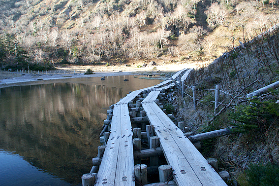 木道ですが、霜があって滑りやすい・・・気をつけましょう。落ちたら災厄。
