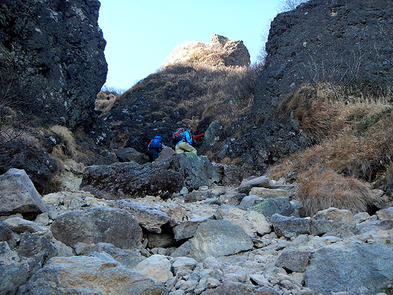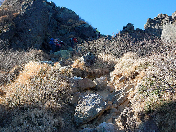 ここからいっきに岩登りです。けっこう急で危ない箇所ありますね。