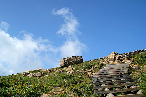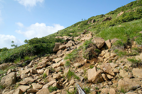 山頂は岩だらけ。