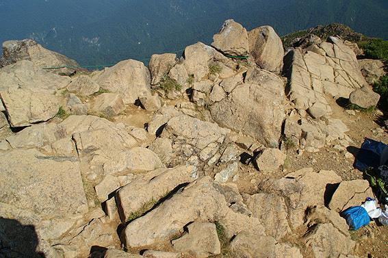 山頂は岩だらけ。