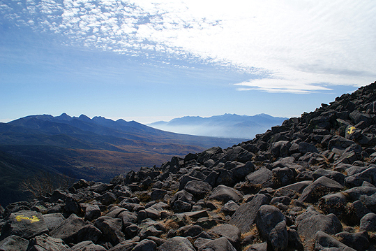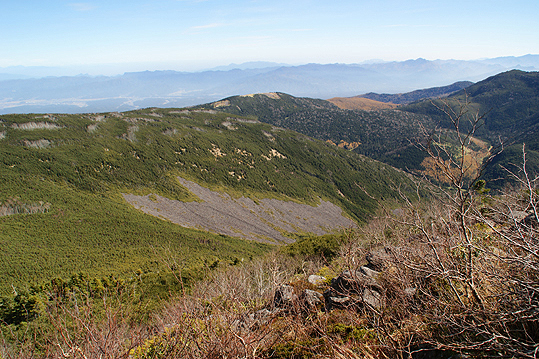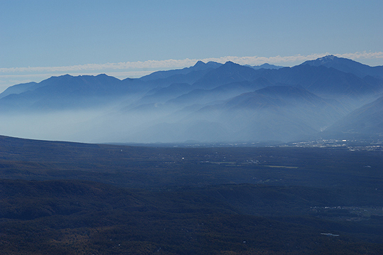 反対側へきました。向こう側の山、南アルプスですかね。大きな山です。