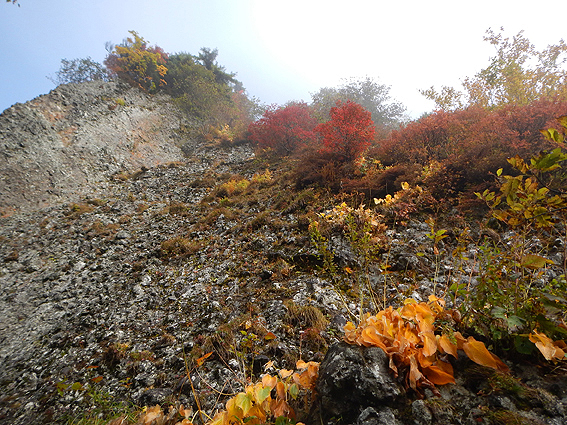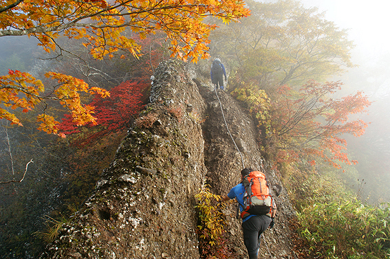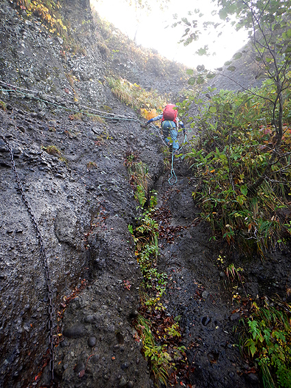 ここはほぼ90度の岩場垂直に登り途中横に移動しさらに垂直に登るばしょです。