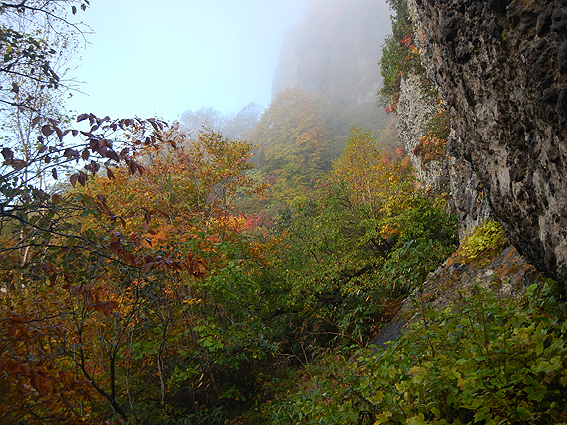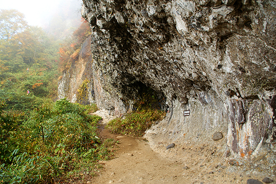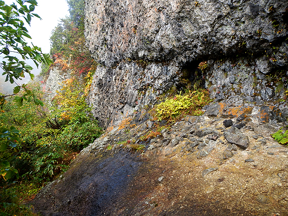 岩沿いを歩きますよ。この光景を見ると疲れが吹っ飛びます。
