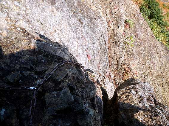 幅約3〜50cmのゴツゴツした岩場、ナイフブリッジを進みます。ここから鎖はありません。