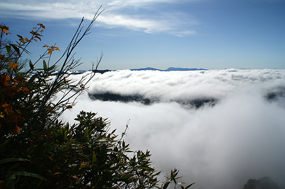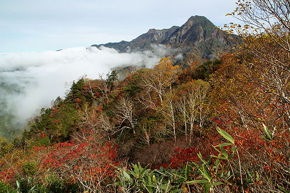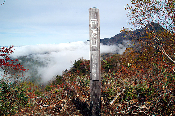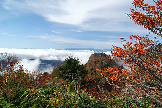 山頂からの景色最高ですね。紅葉と雲海、そして高妻山。綺麗だー。