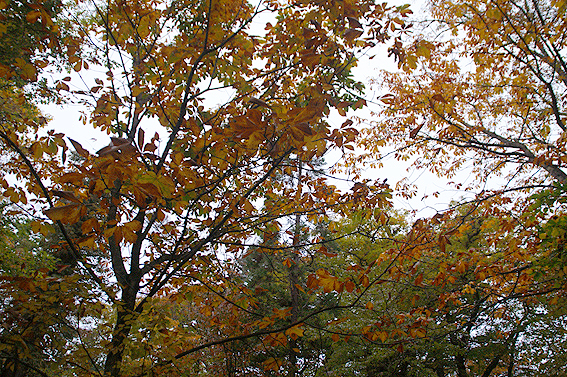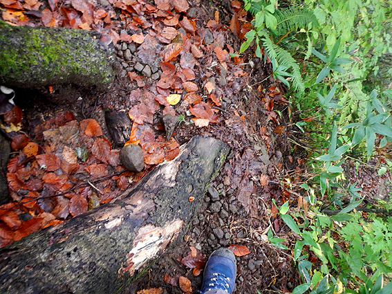 落ち葉がいっぱいなので滑りやすい。気をつけて登りますよ。