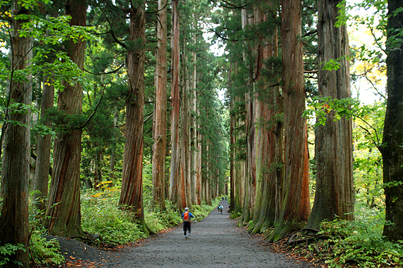 大きな杉が連なる奥社杉並木を歩きますよ。いつきてもこの参道好きですね。