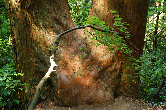 途中とんでもないビックサイズの樹が。二本が繋がってる樹って夫婦○とよく言われてますよね。