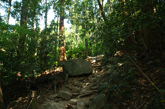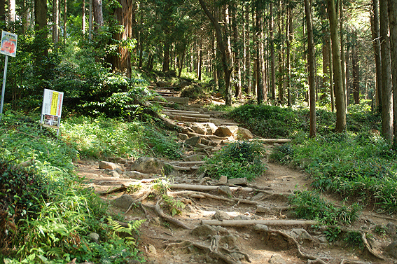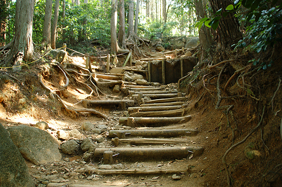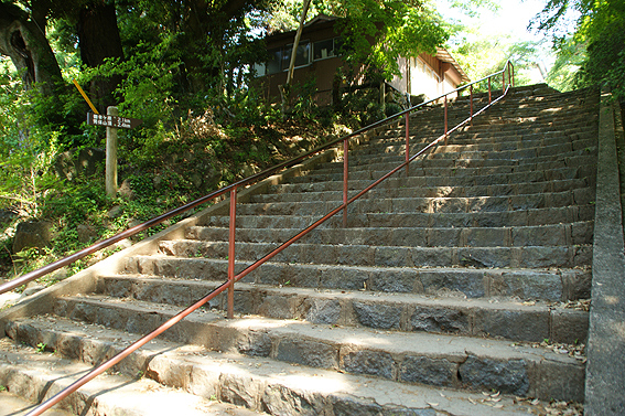 ロープウェイに通じる石段ですが、これが以外に急斜面で疲れる。