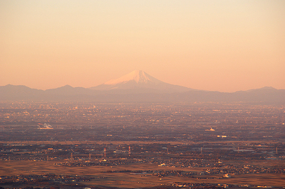 遠くに富士山が見えました。赤いですね。