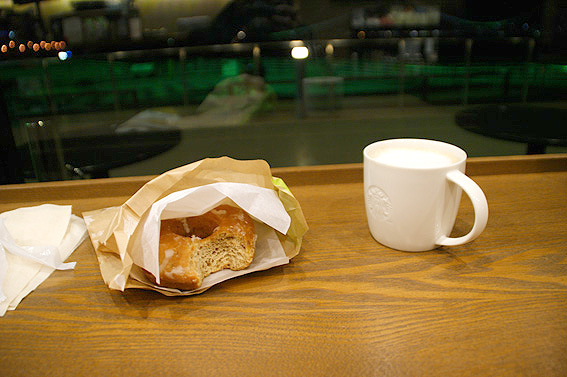 一通り夜景も撮り終えたので、スタバーのコーヒーとドーナツで一服です。