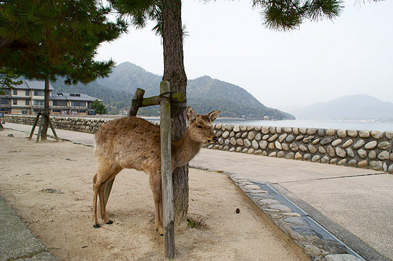 厳島神社方面へ向かっていくと現れました。鹿です。あちこちにいます。