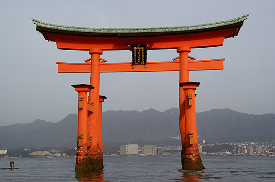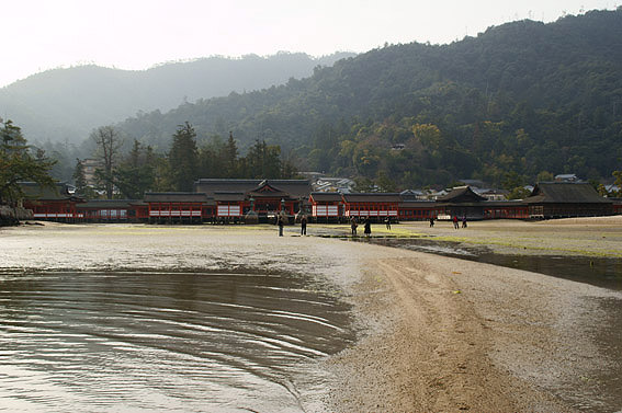 お〜あれが噂の厳島神社ですか〜〜。あれ!?海が引いてますね。