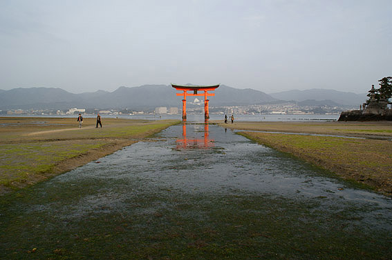 真正面から見た厳島神社です。海が引いた時じゃないと見れない光景です。