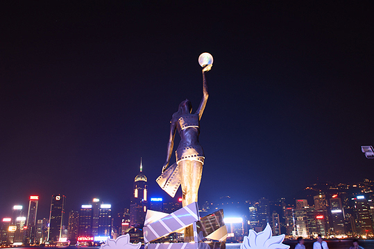ライトアップされた映画の女神像。昼間とは全然違いますね。
