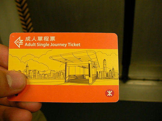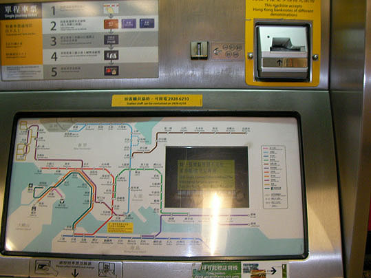 これが香港の切符販売機です。目的地の名前を押すと料金が表示されお金を入れるとカードが出てきます。
