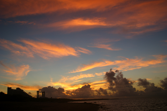 南国と言えば朝焼け夕焼けでしょう。これは見ておきたい!っという事で早朝4時半頃海へ。