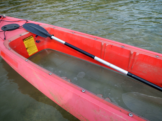 何年ぶりかのカヌー。カヌーの底がクリアでした。魚が見れるかも。