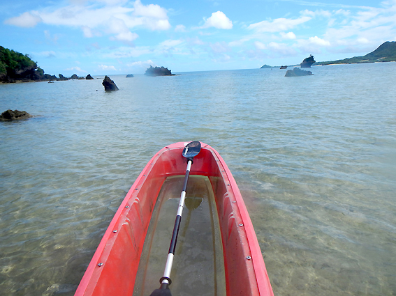 海が穏やかでスイスイ進みますね。海も透き通っていて魚が見える見える。たまりませんね。