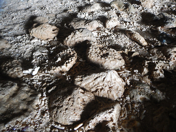 洞窟の説明を色々聞きながら進みます。化石らしいです。