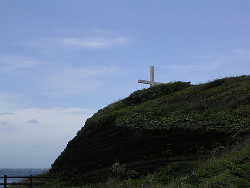 浜から上がってあたりを見渡すと・・・・なんだあの十字架は?