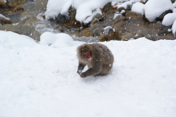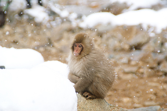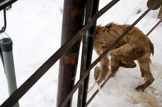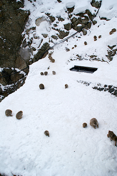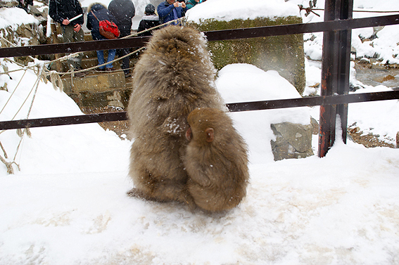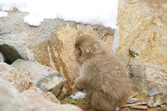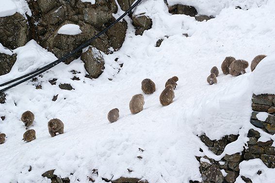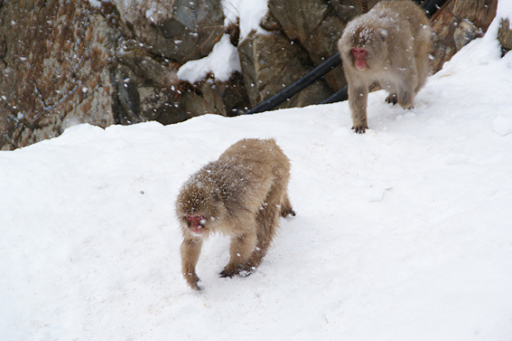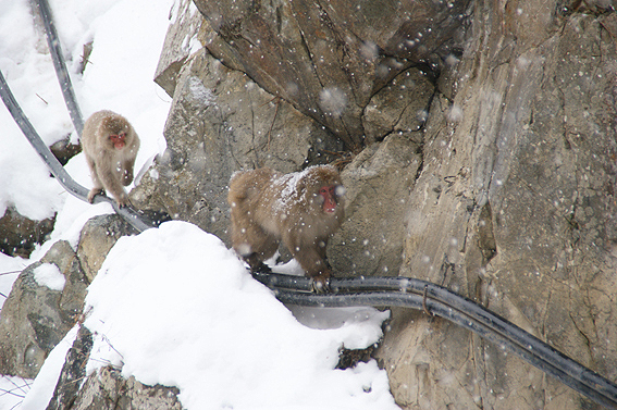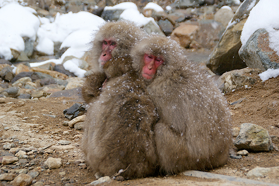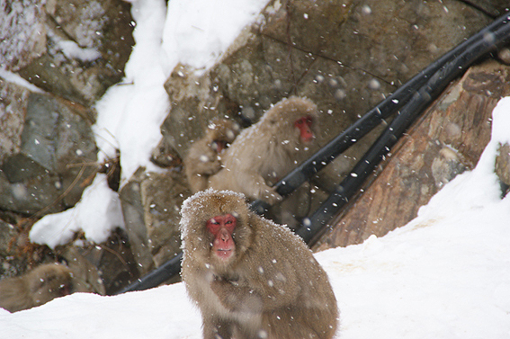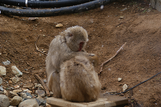 あまりの寒さに猿達が固まってます。