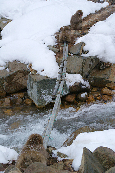 温泉のホースでしょうか?きっと暖かいんでしょうね。