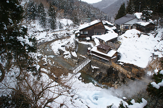 後楽館を上から眺められます。絵になりますね。後楽館は猿と温泉に入れる宿らしいですよ。