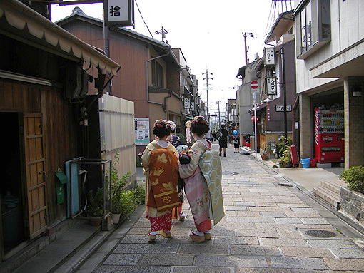 甘い物食べ終わり次の目的地へ行く途中、舞妓さん達と遭遇。この暑い中よく着物来てられますよね。