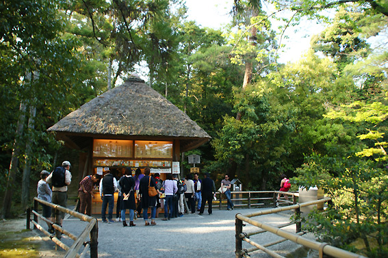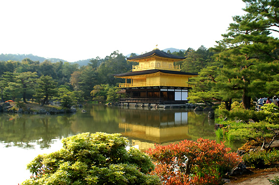 入ってすぐに、鏡湖池越しの金閣寺が見られます。ここが撮影スポットなので、撮影の順番待ちですね。