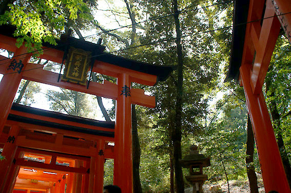 山道に列をなす鳥居達、緑と朱色のコントラストがなんとも言えないです。