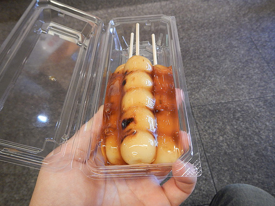 途中で団子のお店があったので、みたらし団子を食べてみました。すげ〜美味い。