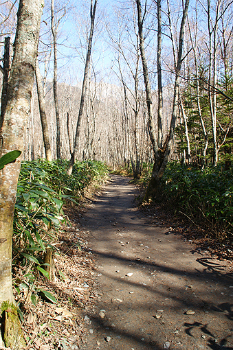 カラ松の下を歩きます。
