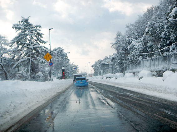 そして徐々に道路(県道558号線)が雪道に変わって行き速度も40キロ前後。